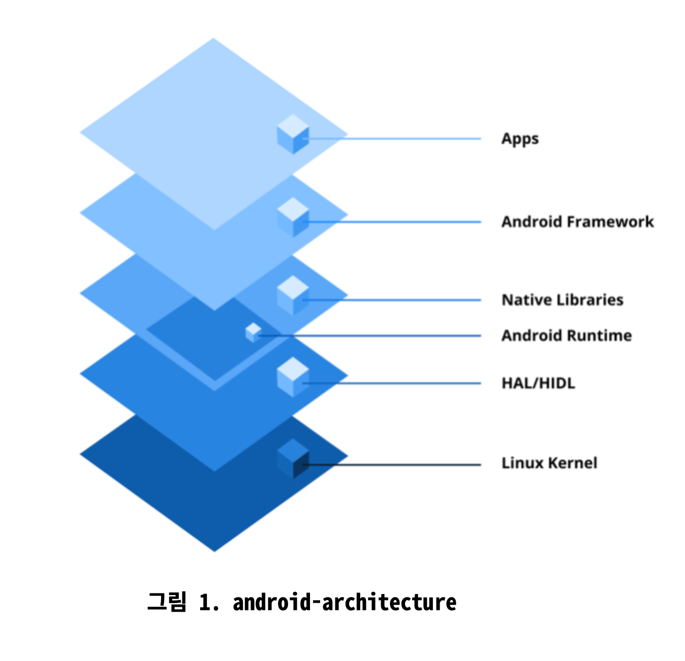 안드로이드 운영체제의 기반을 형성함 하드웨어 추상화를 처리하며 소프트웨어와 하드웨어 간의 원활한 상호 작용을 보장 - 하드웨어 추상화 계층(Hardware abstraction layer (HAL))