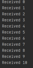 Subscription 2는 0부터 시작하는것이 아닌 delay 1100ms가 지난후의 값인 11부터 시작하게 된다.
