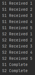 이 예제에서는 구독을 두번하였다. 결과는 모두 동일하였다.